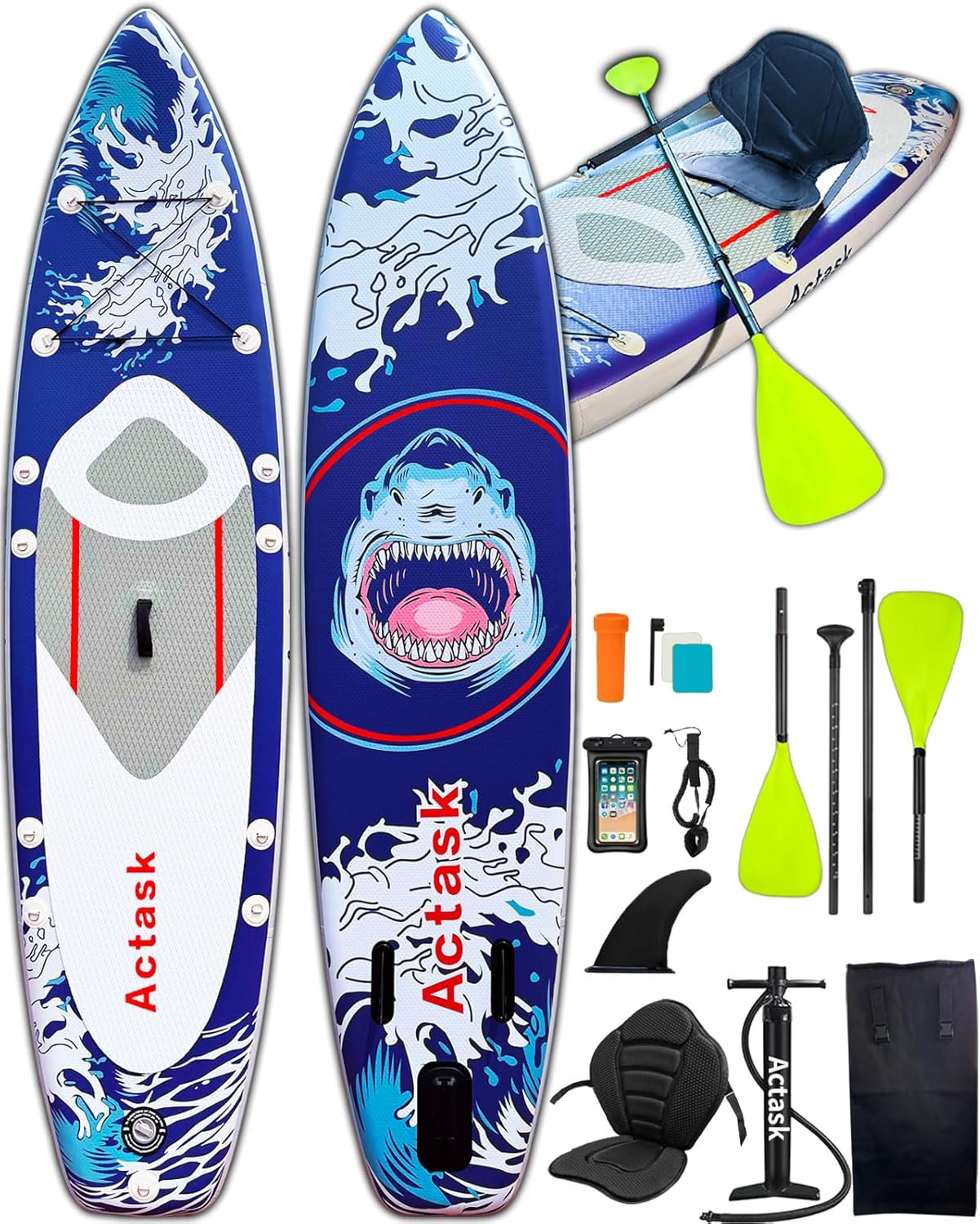 This stand up paddle board features a unique and eye-catching design that makes it stand out wherever you go. Designed with ultra-lightweight materials, it offers exceptional stability and strong load capacity, making it ideal for all skill levels. Equipped with a convertible paddle that can switch between single-blade and dual-blade modes, you can enjoy paddling while standing or sitting — a highly practical feature for various conditions. The included detachable seat adds even more comfort, allowing you to paddle while seated for a relaxing ride. Built with a dual-seal air valve system, the board is well protected against air leaks and offers improved safety, durability, and structural strength. With a weight capacity starting from 200kg, it easily accommodates solo riders or multiple passengers with confidence. The premium anti-slip EVA deck pad provides a soft, grippy surface for maximum comfort and balance, suitable for ocean, lake, or river use. This versatile SUP board supports multiple activities such as yoga, surfing, touring, fishing, and adventure — perfect for all water sport enthusiasts.