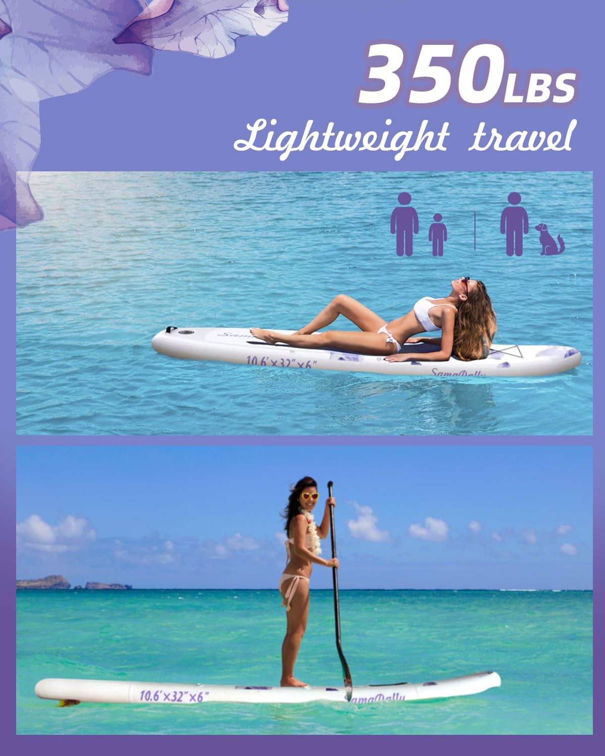 SamaDally eye-catching inflatable stand-up paddle board, Experience water fun faster and in style. We believe exploring lakes, rivers, and coastlines should feel alive, freeing, and uniquely yours. Discover your perfect match—from dreamy sunset purples and deep ocean blues to playful candy-colored boards with standout graphics.