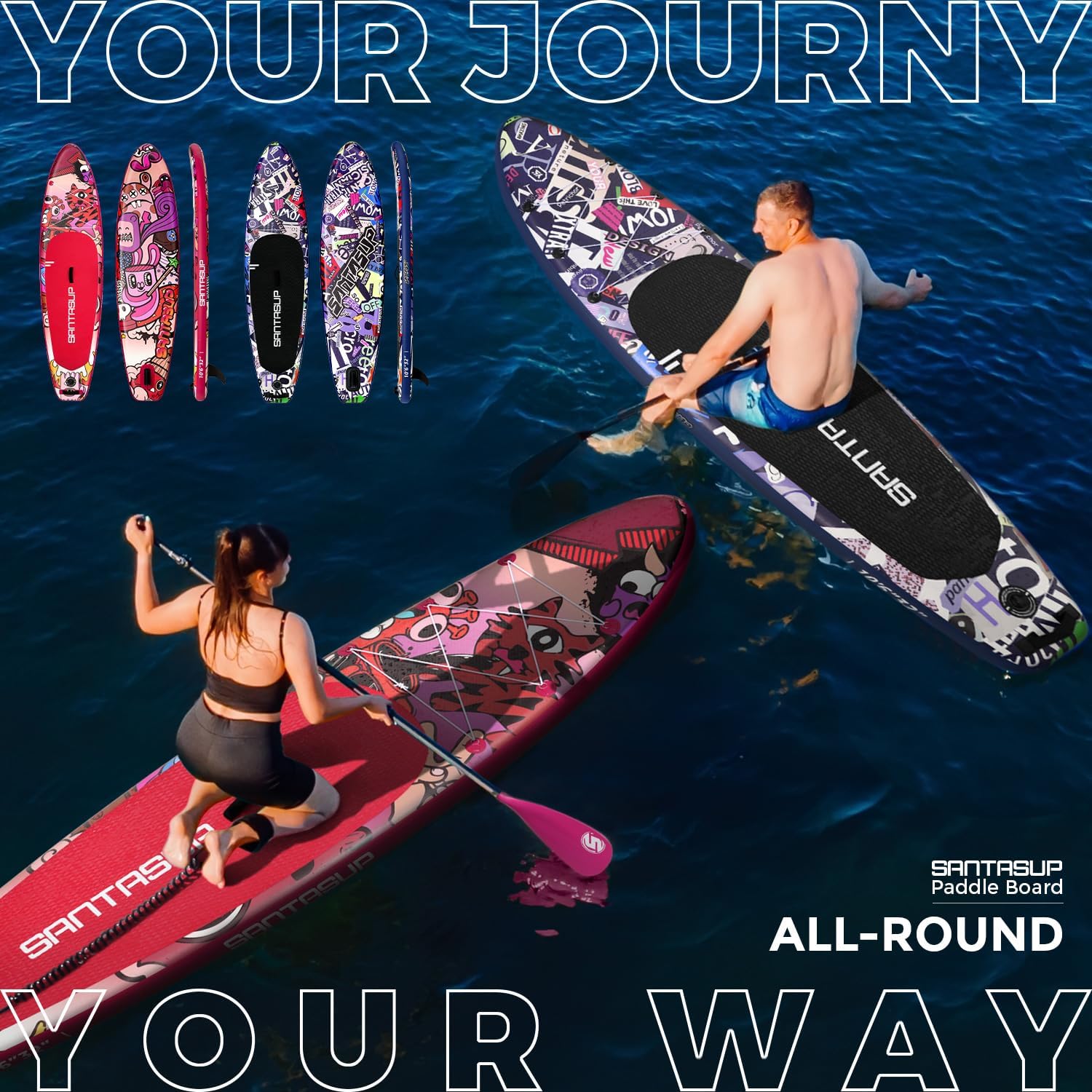 In a coastal village, Alex found Santasup Paddle Board. With his friends, they learned to surf, tumbling and laughing in the waves. Through perseverance, they mastered the art, riding the waves with joy and forming unbreakable bonds. Their days were filled with adventure and laughter, as they embraced the thrill of the sea and the sport of surfing.